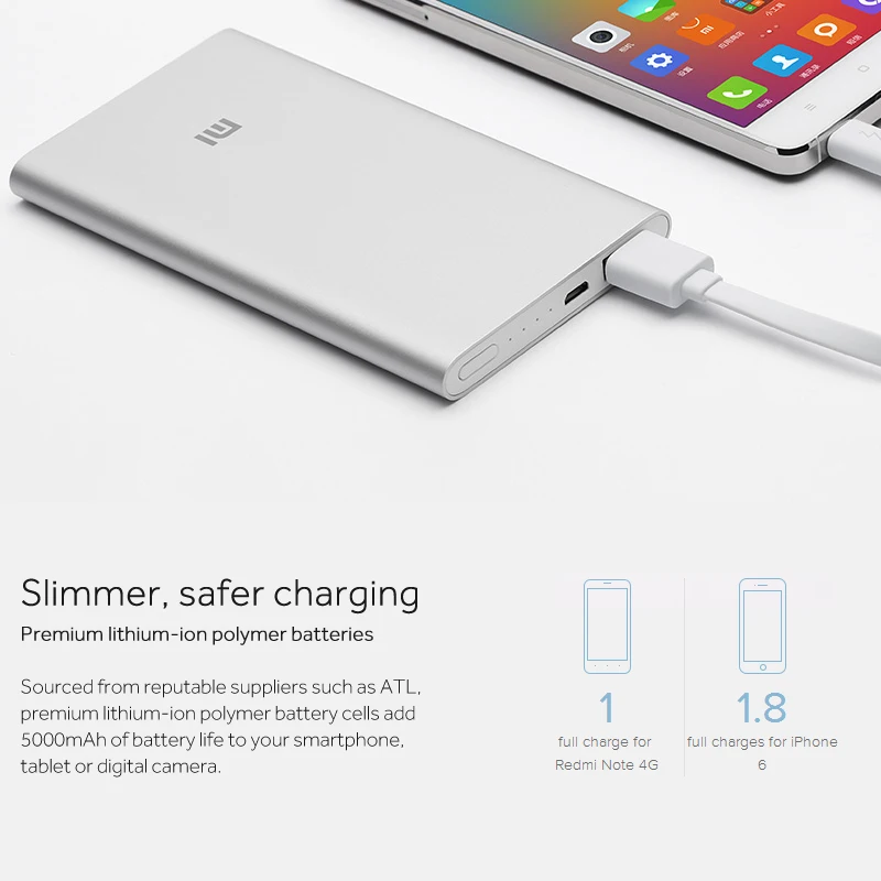 Buy Now Original Xiaomi Power Bank 5000mAh 2 Portable Charger Slim Xiomi Powerbank 5000 Li-polymer External