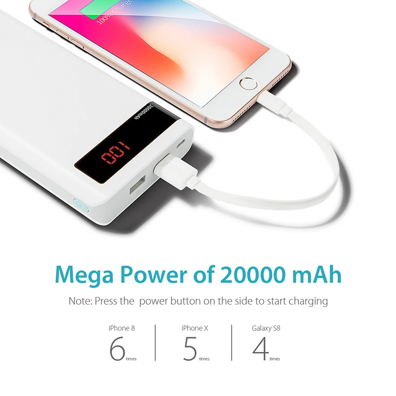 ROMOSS Ares 20 20000mAh Power Bank USB Type Portable Charger External Battery 5V 2.1A With LED Display For Phones Tablet