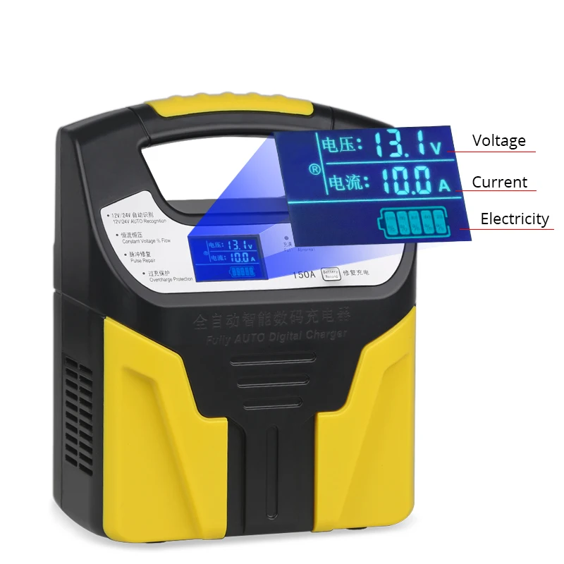 Hot Sale 10A 24V 12V Car Battery Charger Automatic 2Ah-200Ah Smart Truck Motorcycle Lead Acid Repair Battery