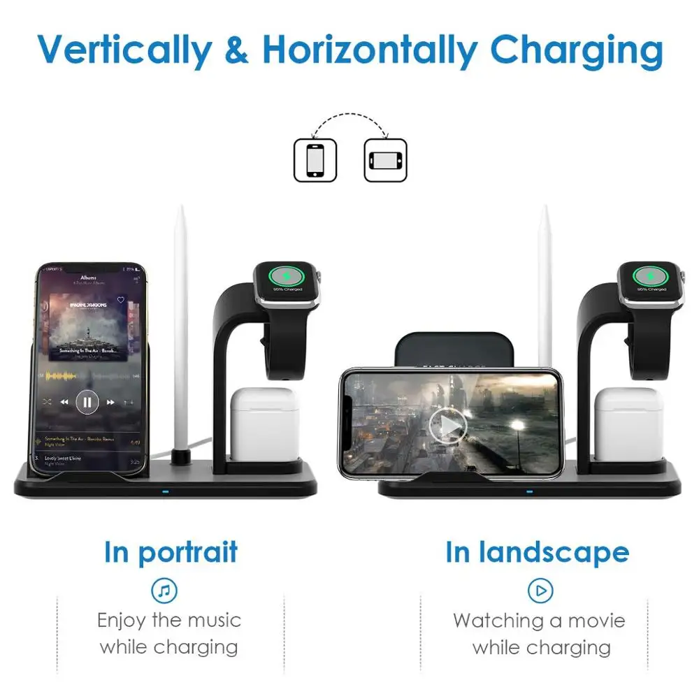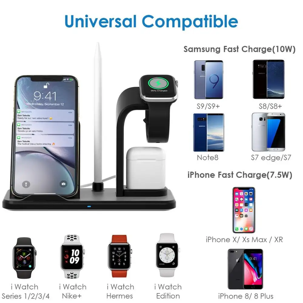 Qi 4 in 1 Stand Fast Wireless Charger For Apple Pen Watch Series For iPhone X XS MAX XR 8 Plus Airpods Charging Dock Station