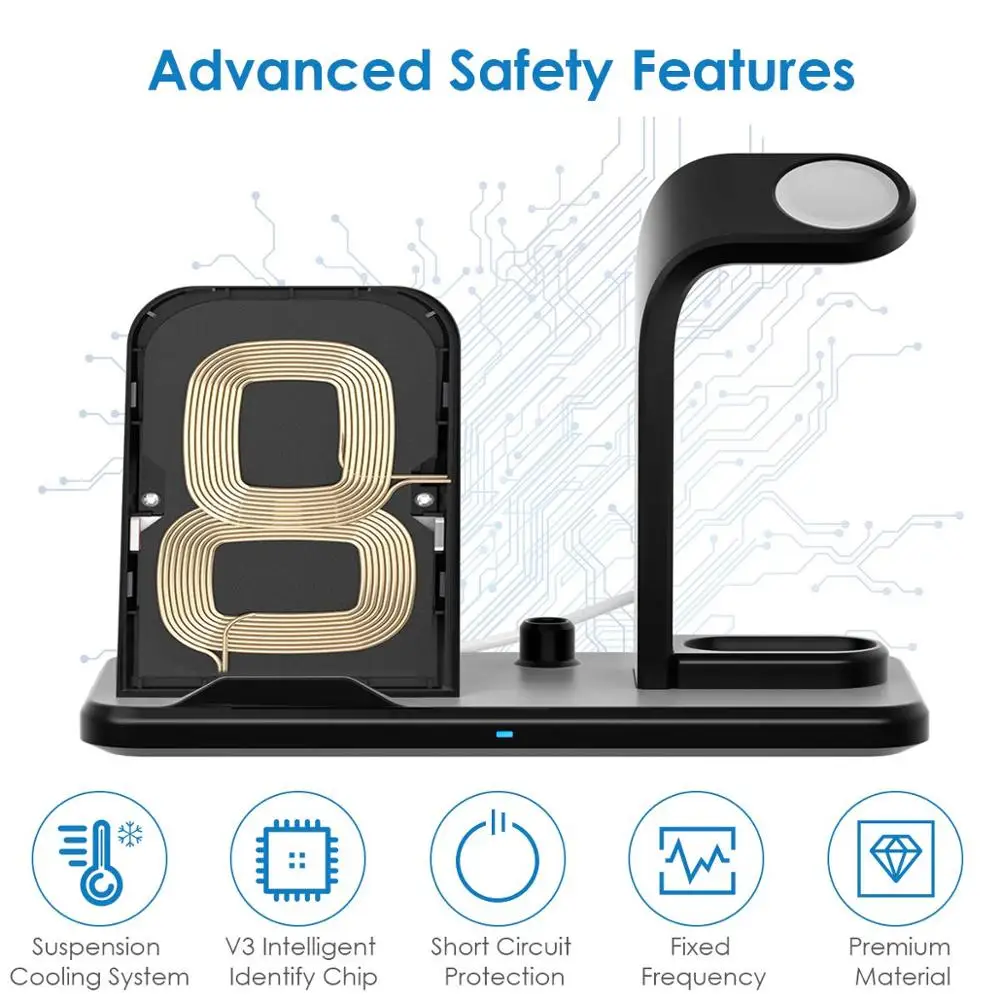 FDGAO Qi Wireless Charging Station For Apple Watch iPhone 11 X XS XR MAX 8 7 6s Plus Airpods 10W Fast Charger Dock Stand Holder