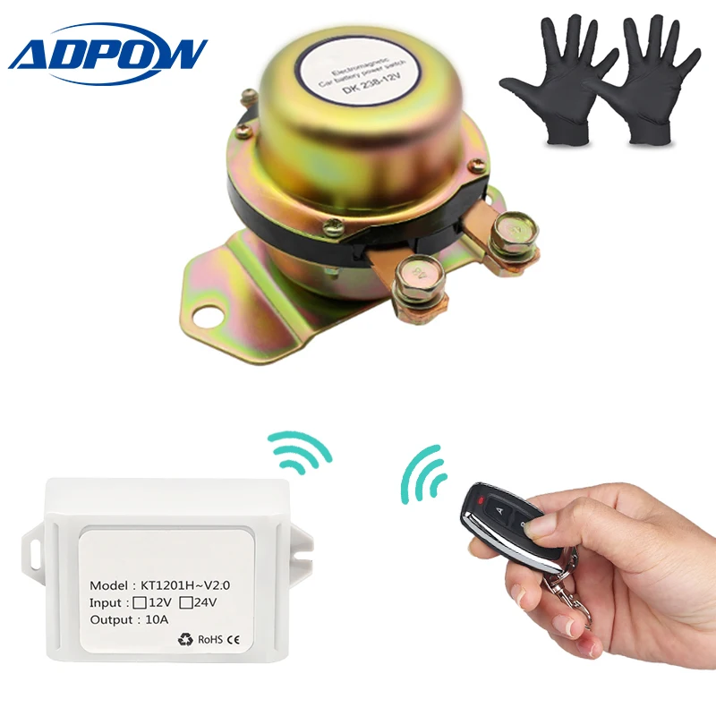 ADPOW Remote Control Car Truck Battery Master Switches 12V 24V Auto Bus Yacht Battery Isolator Cut Off Disconnect Relay + Gloves