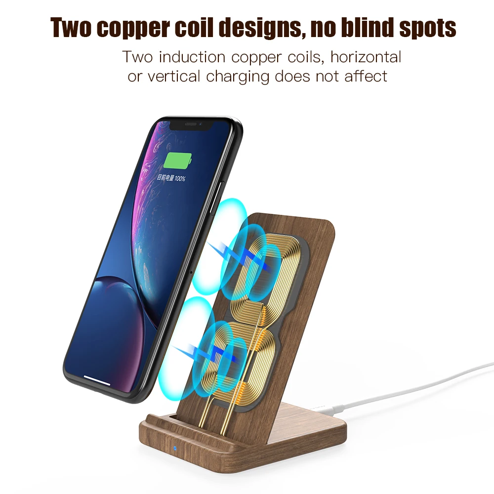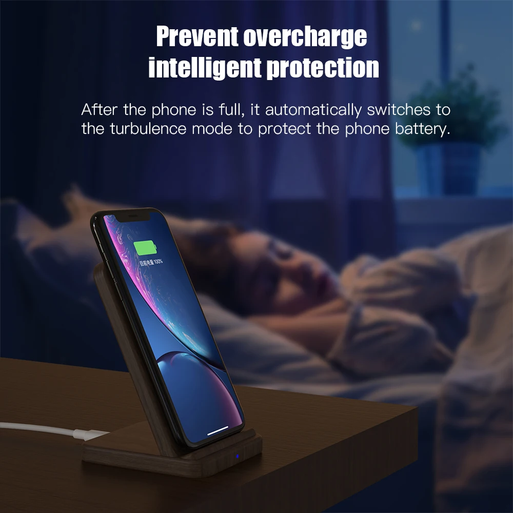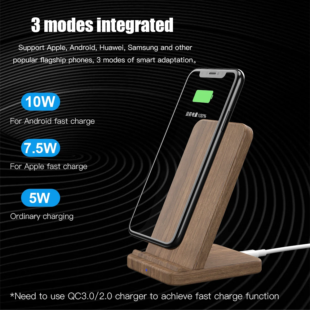 KEYSION 10W Wooden Qi Wireless Charger for iPhone 11 Pro XR XS Max Xiaomi mi9 fast Wireless Charging Stand for Samsung S10 S9 S8