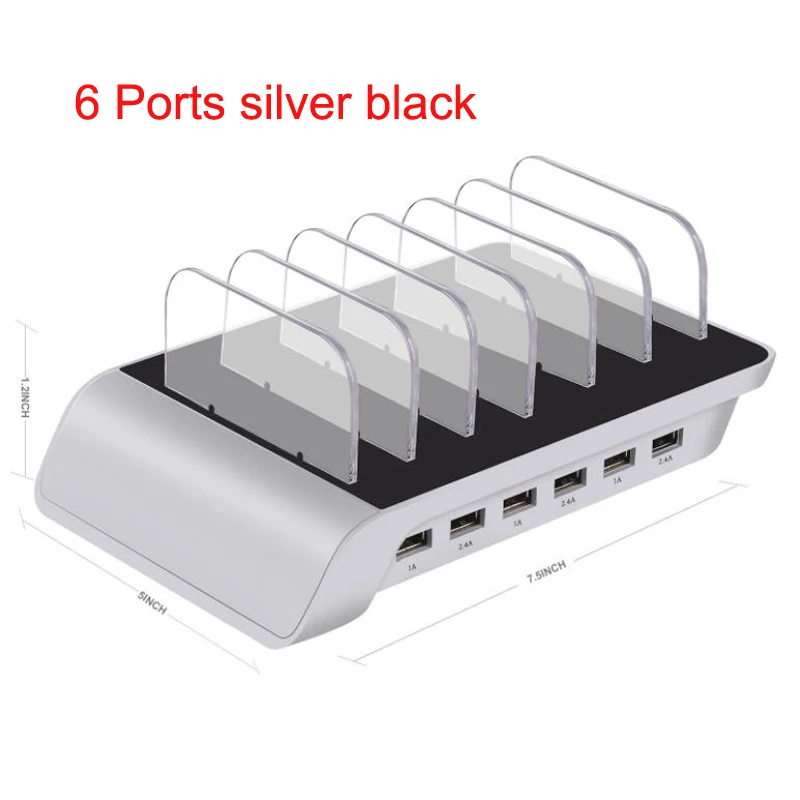 Great Gifts Multi Port Fast Charging USB Phone Charger 6 Ports Station Dock Stand Holder For Phone/Tables/Smart Watch/Power Bank