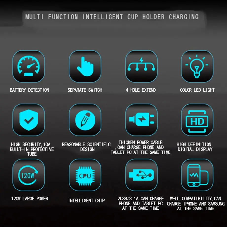 Big Promo Multifunction Car Charger Cup Holder With LED Display Glowing Dual USB Cigaretter Lighter Sockets P