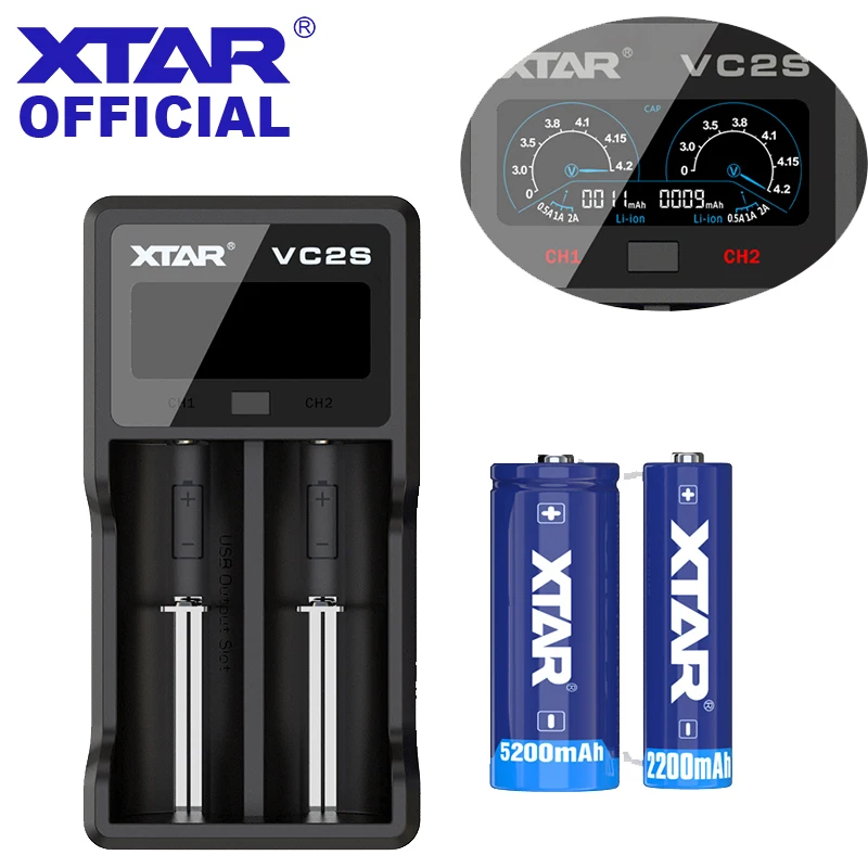 XTAR VC2 S VC2S VA LCD Screen Micro-USB Powered Portable Power Bank Apply To 3.6V/3.7V Li-ion/IMR/INR/ICR 18650 26650 Charger