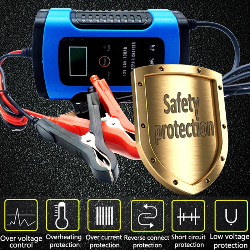 12V 5A Intelligent Smart Car Battery Charger 12v Automatic For Lead Acid Battery Charging Pulse Repair LCD Display 100v-240V
