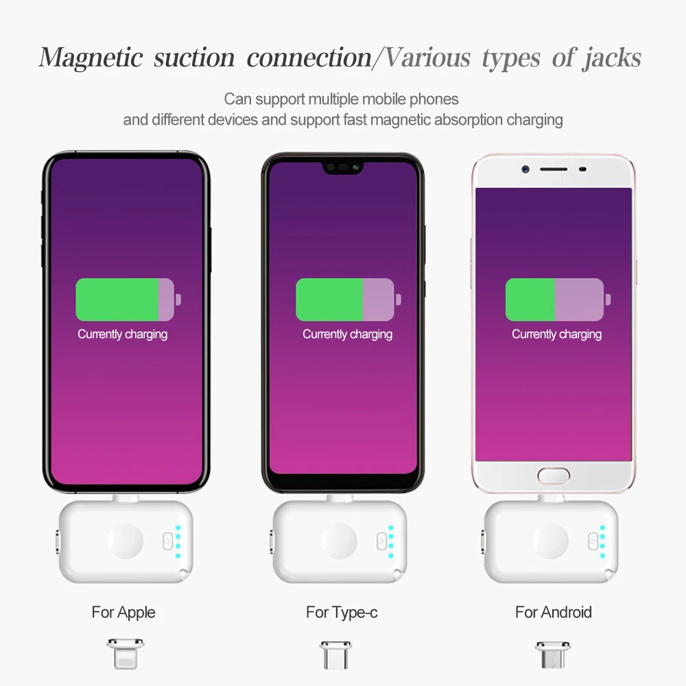 4PCS Magnetic Mini Power Bank Micro Type C Charging Powerbank Portable External Battery Charger Smartphone For Samsung iPhone
