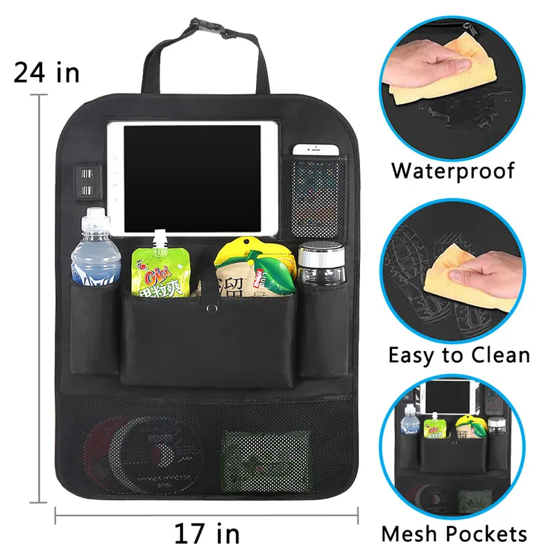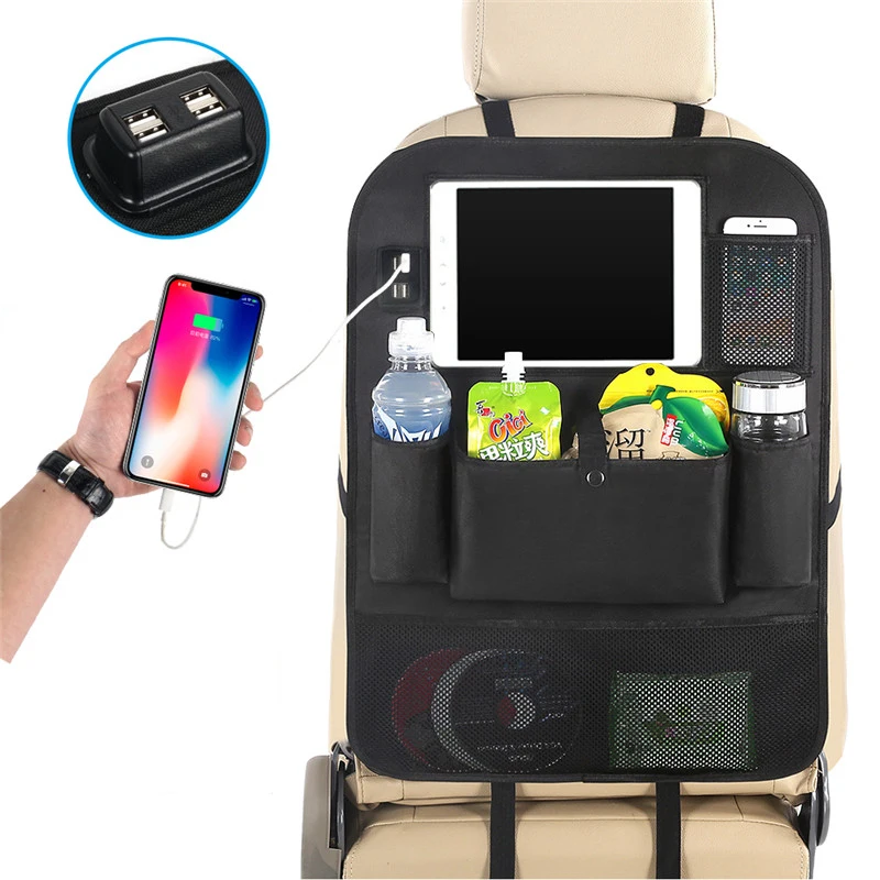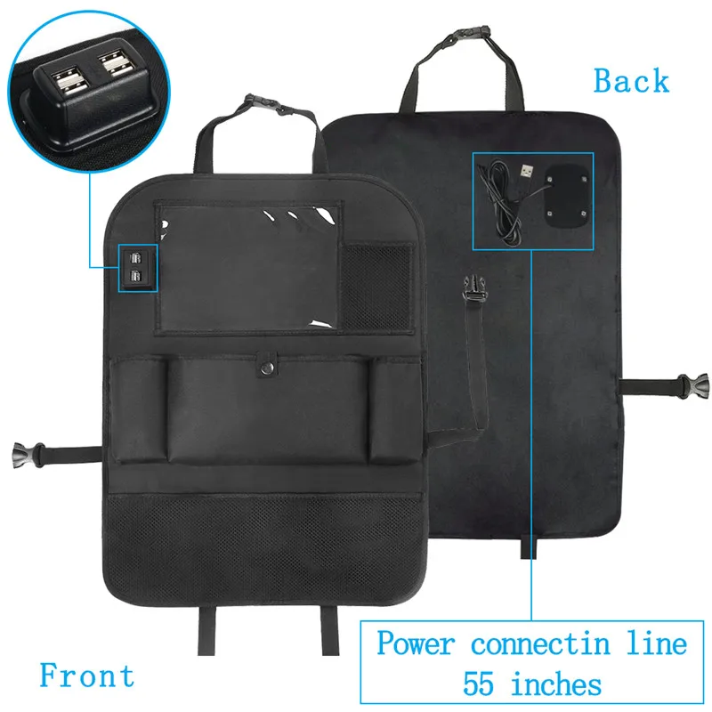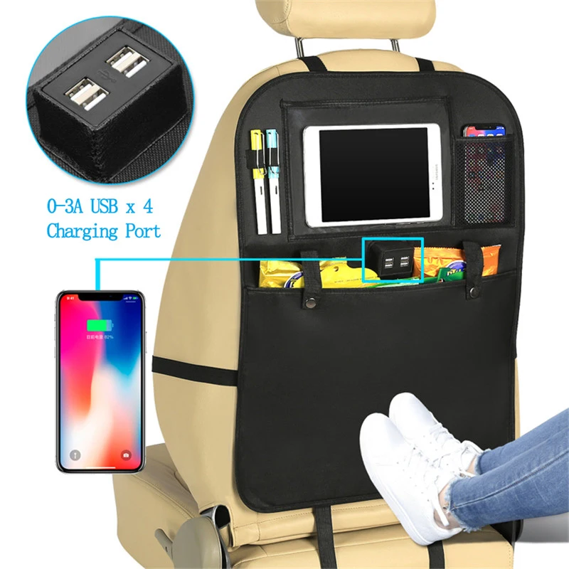 Hot Sale GSPSCN Kick Mats Car Seat Back ProtectorsStorage Pockets Seat Back Organizer with 4 USB Charger for